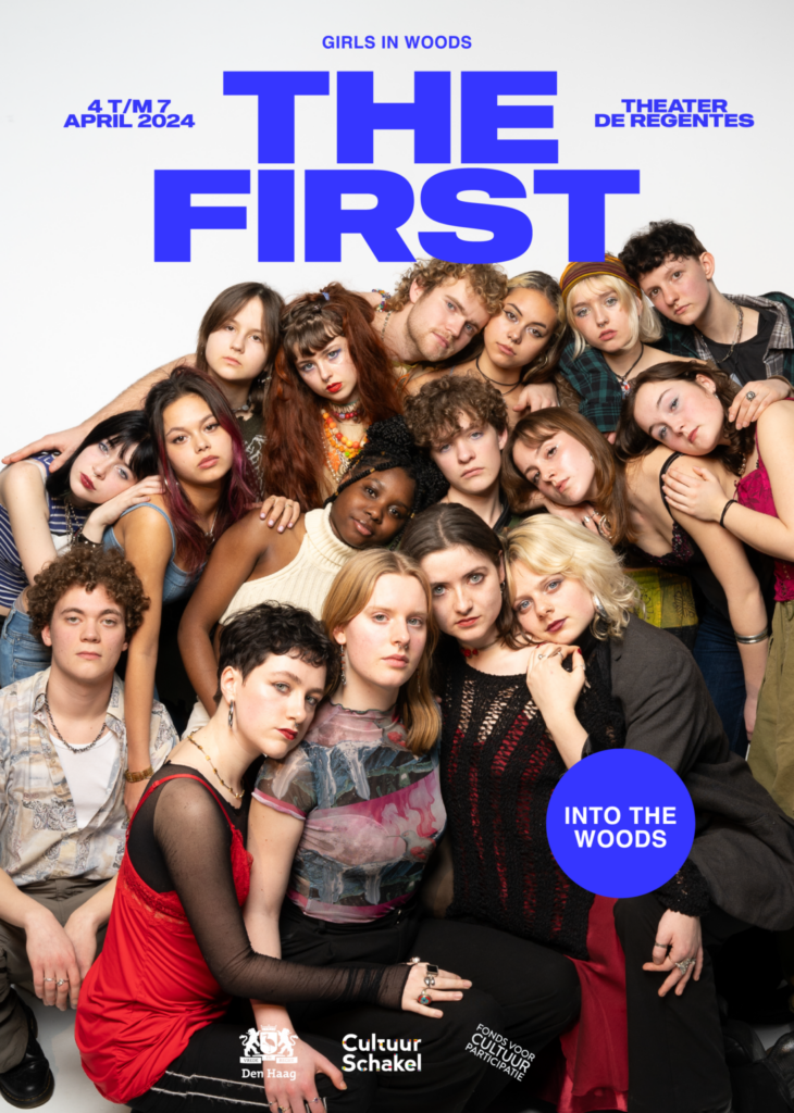 The First is een Into the Woods productie; Girls in Woods deed samen met 17 jongeren onderzoek naar de eerste keer seks. Naast de performance is er The First podcast en The First fotoserie in de foyer van Theater De Regentes.