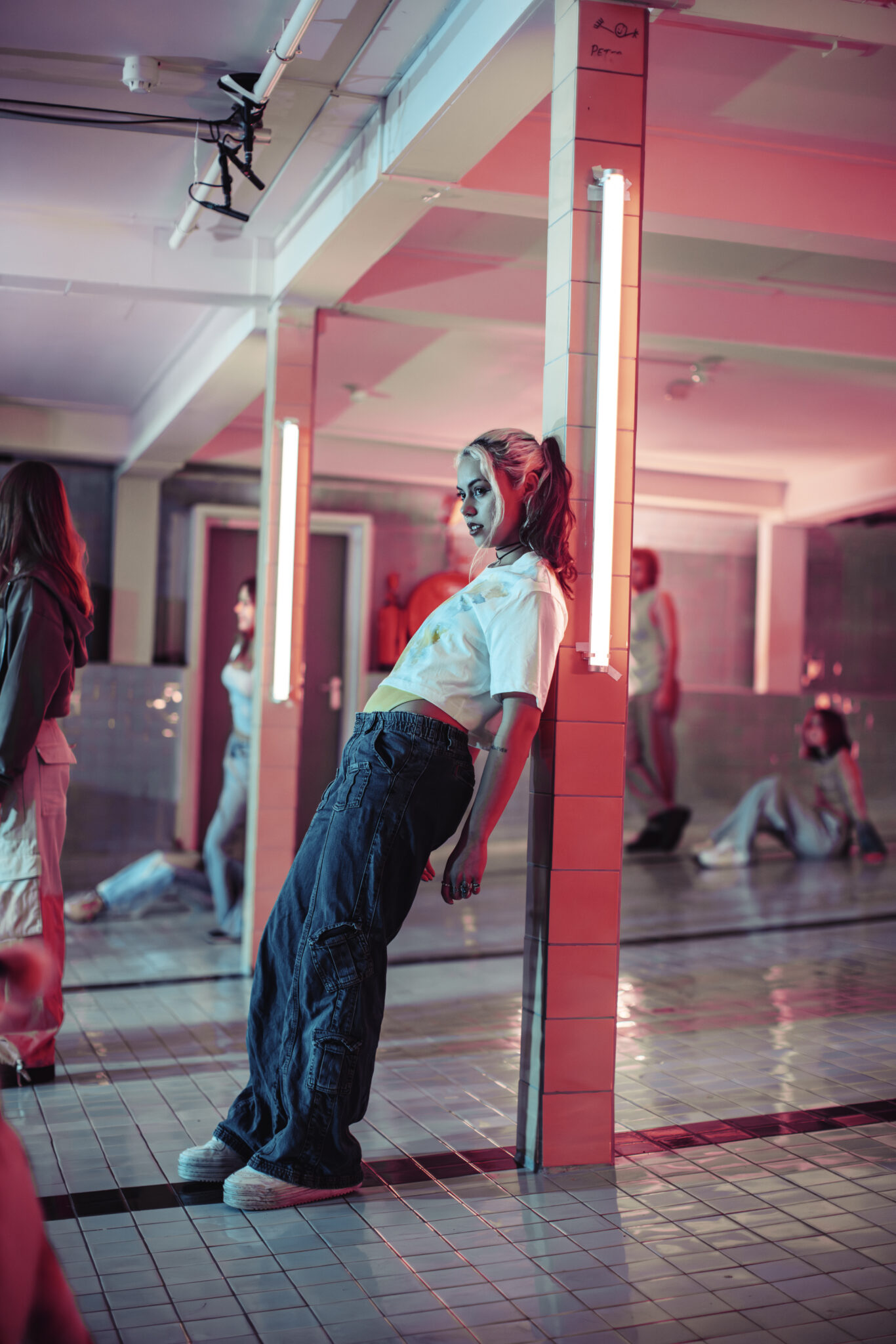 Van februari tot mei 2022 maakte Girls in Woods met een groep jonge performers bij DOX in het kader van ons onderzoek naar keurslijven en escapisme ‘The Roof’; een voorproefje van de nieuwe voorstelling No man’s land (2023).